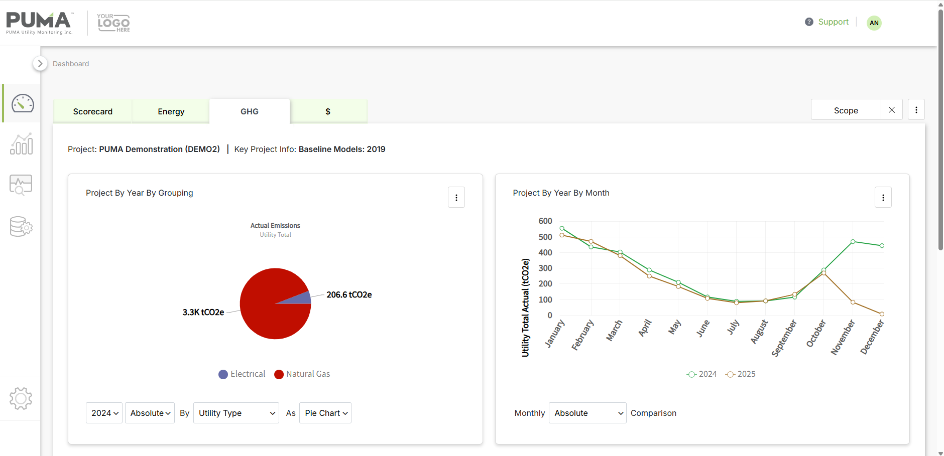 PUMA's built-in dashboard — GHG